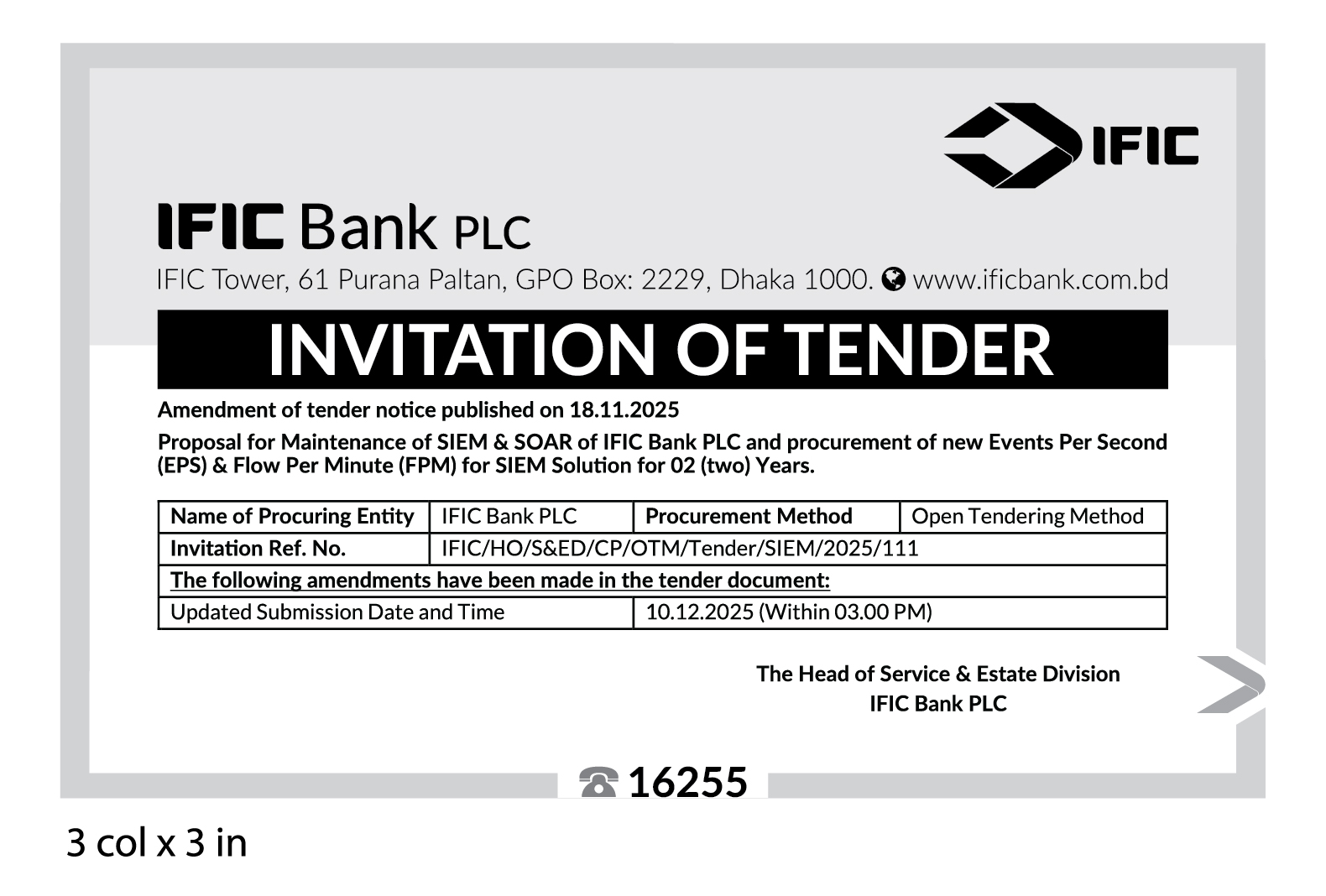 Tender Notice on “Vulnerability Management as a Service for IT Environment of IFIC Bank PLC.”